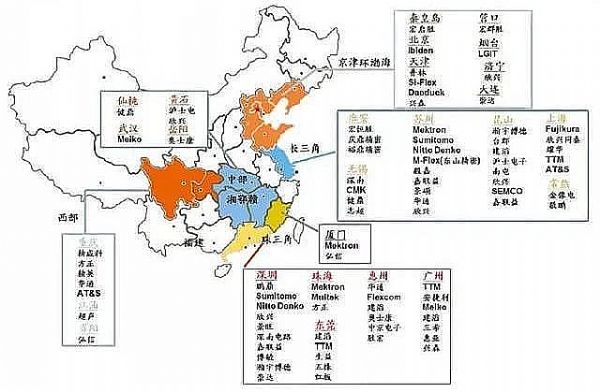 ▲PCB廠分布數(shù)據(jù)圖